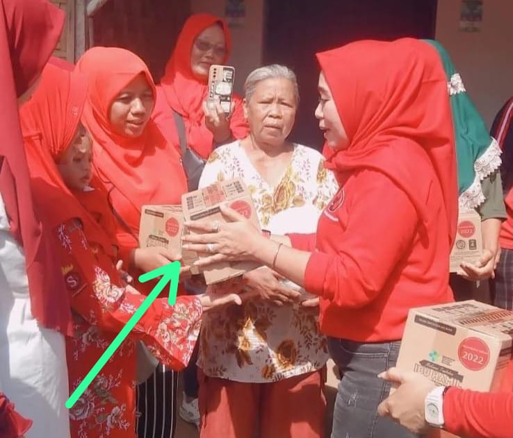 Padalah, bantuan dikemas dalam kardus berisikan biskuit itu diketahui biscuit program Bantuan Pemberian Makanan Tambahan (PMT) untuk Ibu hamil dan balita gizi buruk dan stunting dari Kementrian Kesehatan RI, namun dimanfaatkan oleh oknum untuk kepentingan politik dan partainya.